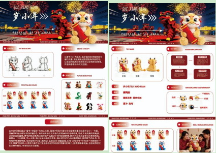 “岁小年”是一款以“春节+中国龙”为核心元素设计的毛绒玩具系列,致力于通过IP化与萌系设计活化传统年俗文化。作品将春节的红色主调与龙的祥瑞符号,转化为软萌亲和的毛绒形象,弱化文化传播的距离感,以陪伴式产品触达不同年龄层,尤其帮助年轻群体感知与喜爱传统文化符号。设计聚焦于打造具有高辨识度的IP化萌态造型,强化情感联结与视觉记忆,产品适配节日赠礼、日常陪伴等多类消费场景,并为后续周边开发与主题活动铺垫基础。作品通过构建“文化符号→IP形象→消费载体→文化传播”的闭环路径,旨在推动春节元素以年轻化、市场化方式融入当代生活,形成可持续的文化传播与品牌延伸,为传统节庆文化的现代表达与产业转化提供实践参考。