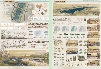 “宋韵水脉,汴西织锦”这一设计理念,旨在将宋代文化与汴西湖的水脉特色深度融合,但同时给人们一个舒适的公共空间。从绿色可持续来看,通过生态泡、自然驳岸等打造不同的驳岸形态。根据不同植物的习性颜色,进行合理的搭配,保证植物的多样性。可以种植浅根系植物保护原生土层。人文元素的提取,从整体公园铺装材质色彩、导视设计和配景设计等来进行体现。将宋朝元素融入景观设计,来体现传统文化。同时通过全场景的无障碍设计和智能化管理来展现人文关怀。“水脉” 突出汴西湖的水资源优势,以水为纽带,构建生态化的湿地水系,发挥其生态调节功能,同时营造丰富多样的滨水景观;“汴西织锦” 寓意着将生态、文化、休闲等多种功能像丝线一样交织在一起,打造出一幅丰富多彩、富有活力的汴西湖生态湿地公园画卷,实现生态、文化与社会效益的有机统一 。