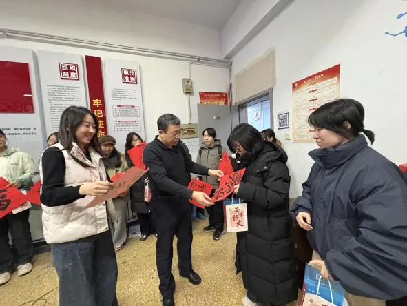 为深入贯彻落实学校关心关爱考研学生的工作要求,鼓舞美设学子士气,12月17日,我院开展考研暖心慰问活动。学院党委书记李楠,团委书记、学工办主任孟小丽及全体辅导员向即将奔赴考场的考研学子送上“加油包”与手写“上岸福”,为他们加油鼓劲。