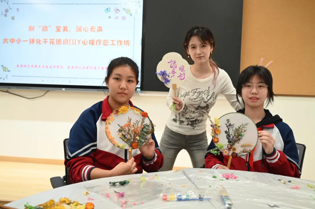 3月6日下午,来自大学、中学、小学三个学段的学生代表齐聚一堂,在学院“艺心同行 美育润心”心理健康工作坊的精心组织下,开展了一场别开生面的团扇DIY创作活动。